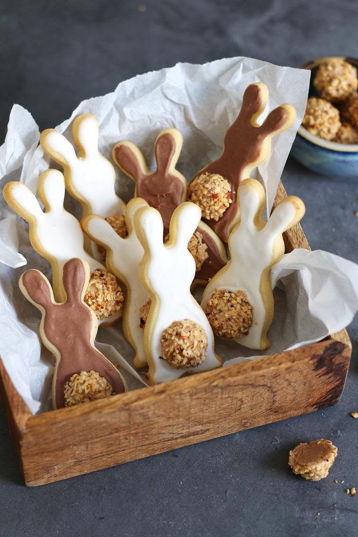 • Biscoitos decorados com chocolate em formatos de ovinhos e coelinhos